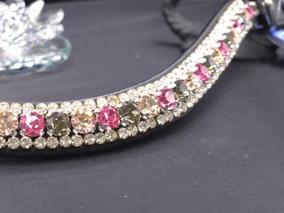 Our Browbands come in various crystal styles include, Hot-Fix, Cup Chain and Rivet with ALL of them designed to include our Easy On/Off Snap or Crystal Button Rivet Closure for easy bridle attachment on both ends. In addition, the Browband loops are created to fit everything from a Standard Bridle to Double Bridles, including most ergonomically designed styles (look for the X-Loop Options for the largest loops). In addtion, our